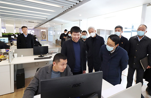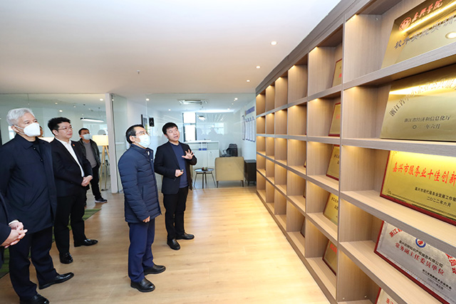 帥燮瑯書記詳細詢問我司當前發(fā)展存在的困難,對我司近年來取得的發(fā)展成績表示充分肯定。在參觀辦公區(qū)域過程中,帥燮瑯書記與公司多名員工親切交流,了解員工個人和工作情況后,稱贊我司在踐行“人才引進”、“學子回嘉”、“共同富裕”等方針政策走在了前列。最后,帥燮瑯書記鼓勵我司要堅定信心,充分發(fā)揮自身服務優(yōu)勢,為嘉興的科技創(chuàng)新和產(chǎn)業(yè)升級賦能,為經(jīng)濟的高質(zhì)量發(fā)展貢獻更大力量。